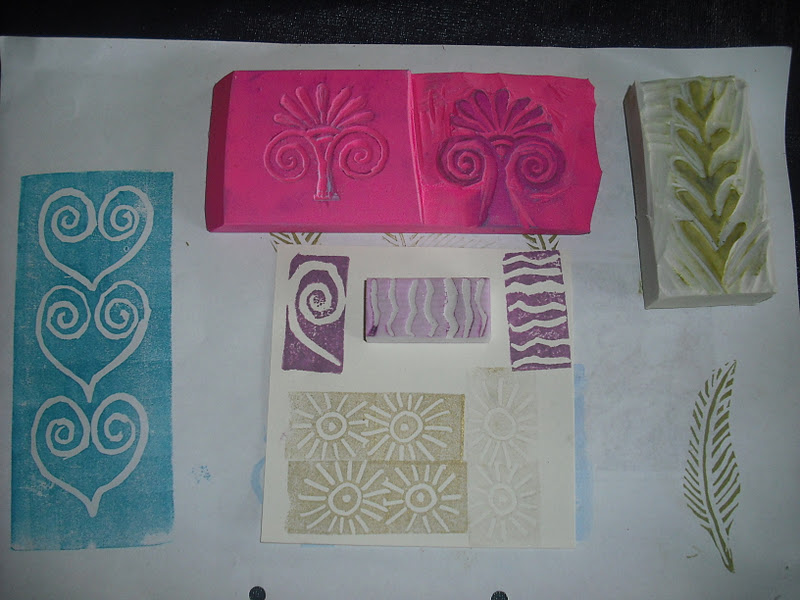 Had a really fabulous day finally having a go at carving stamps from plastic erasers. One of those things I always thought I would like to do, and now have tried and LOVE....and it is way easier than I thought it was going to be.